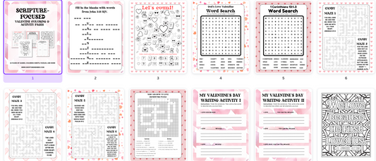 Scripture-Based Valentine Coloring and Activity Pages