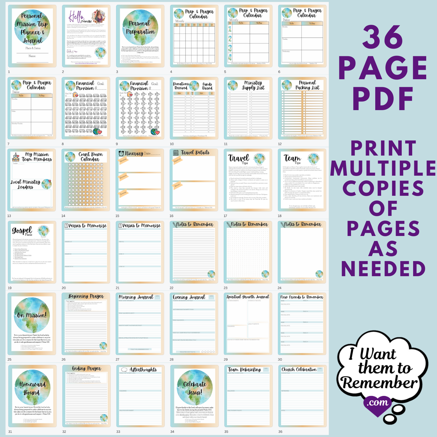 License for use personal/family use only. You may not share the file or printed resource. To purchase for your entire mission team or mission organizations, please email marsha@iwantthemtoremember.com.